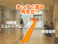 | 1. 入口からまっすぐ進んで、階段の前を右に曲がってください。 |